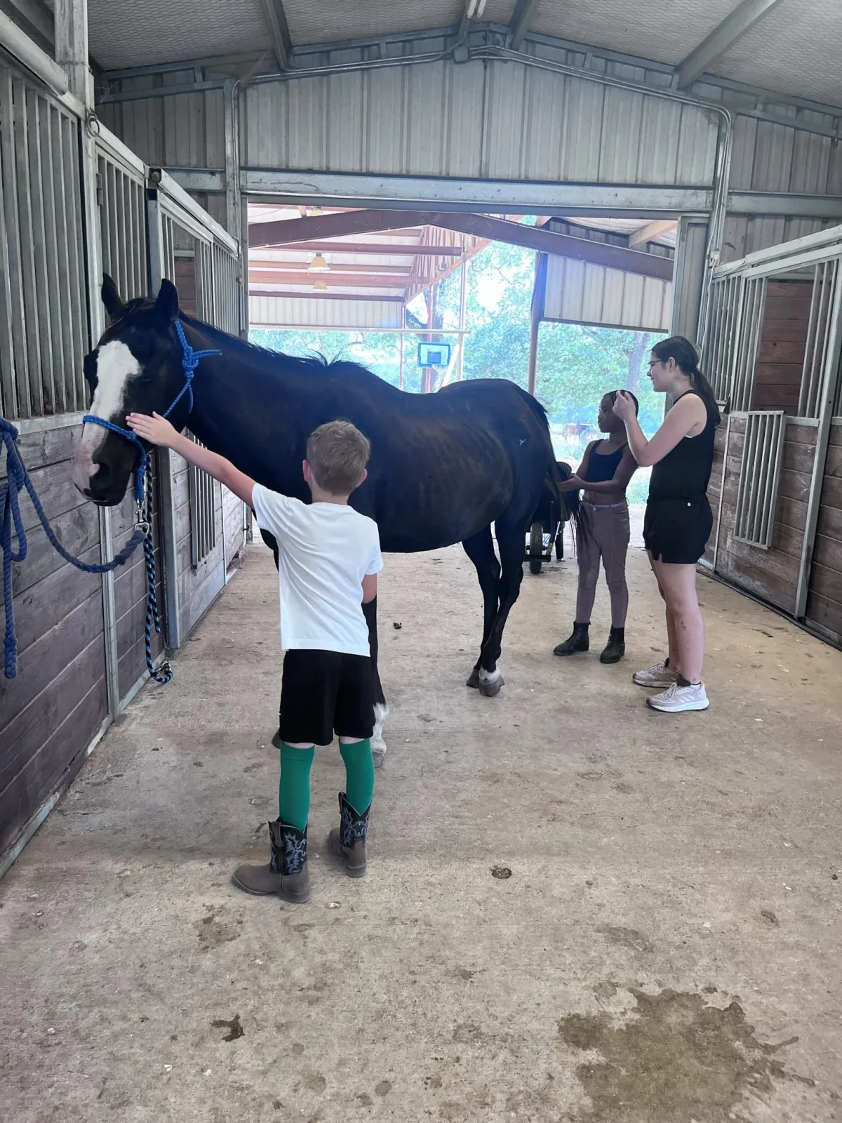 Campers get hands-on with grooming, tacking, and feeding—building a deep bond with their horse and learning real horsemanship.